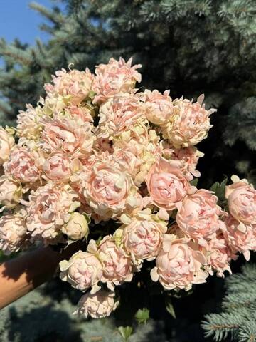 Спрей роза, цвет кремово- розовыйКол-во цветков на стебле : 10-15Размер цветка: 4-5 см.Высота: 50...