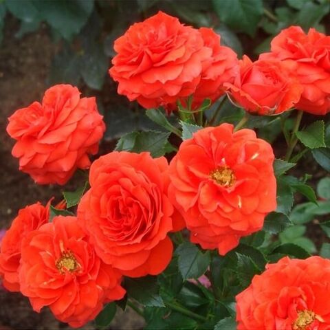 Класс: Флорибунда Высота (см): 60-80 Ширина (см): 50-60 Диаметр цветка (см): 8-9 Цвет: красно-ора...