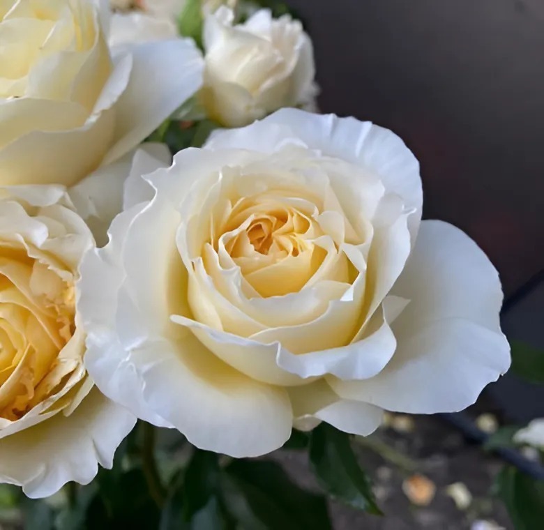Красивые белые, иногда с лимонным оттенком цветки появляются в крупных кистях. Лепестки по краям вырезные, фестончатые. Чудесные медово-лимонный аромат. Куст высокий, с темно-зеленой листвой, устойчивой к заболеваниям. Цветение обильное и продолжительное.