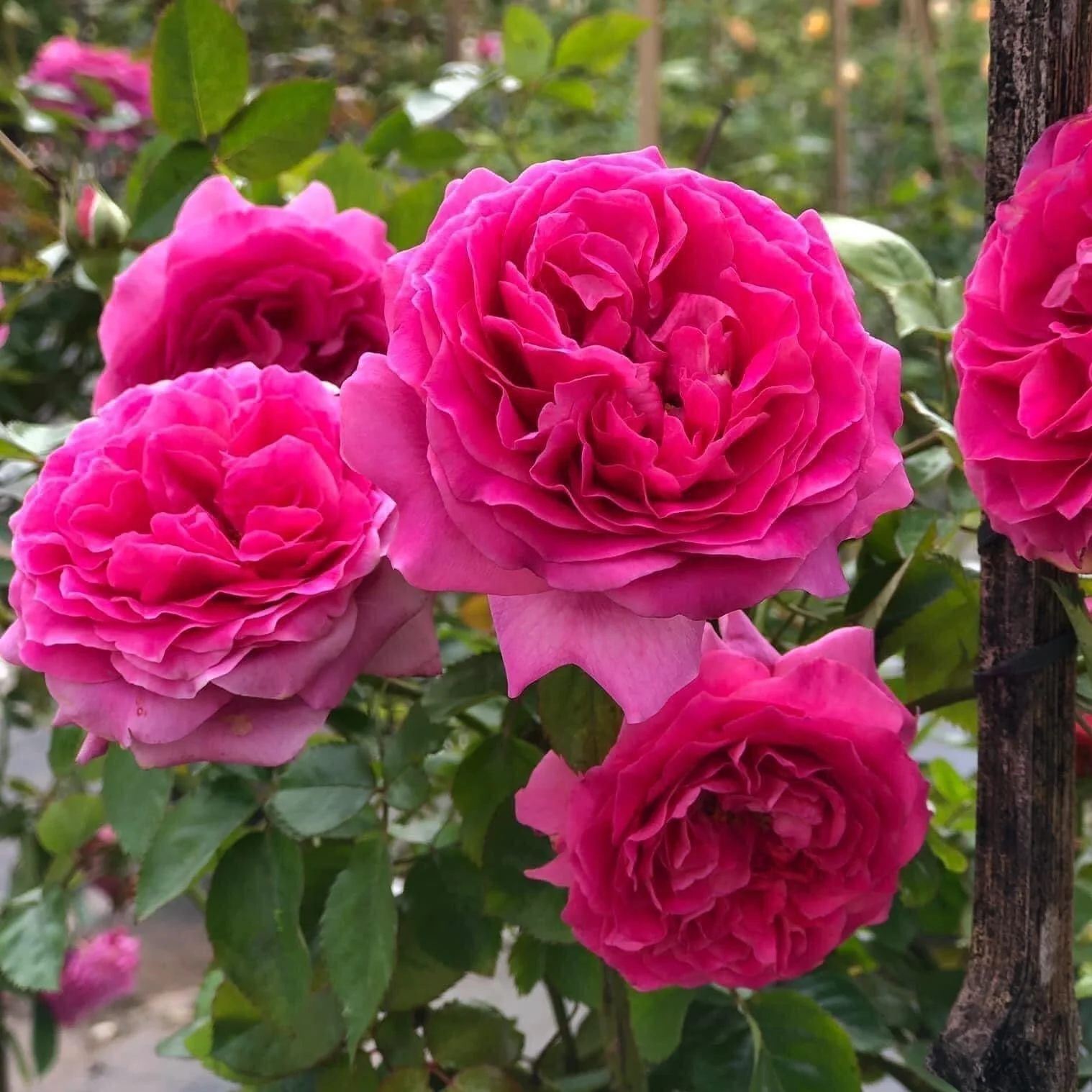 Эта роза может околдовать каждого любителя роз своими махровыми (40-50 лепестков), большими, чашевидными цветками и очаровательным, очень сильным фруктовым ароматом. Цветки диаметром 10 см, чаще всего одиночные. Необычная роза довольно густого пурпурно-розового цвета (фуксиново-лилово-розового). Благодаря её полуглянцевой, тёмно-зелёной, прочной листве она в высшей степени способна сопротивляться болезням листьев. Куст высотой 70-90 см и шириной 50 см. Хорошо подходит для срезки, групповой посадки и выращивания в кадке. Цветение повторное. Награды: Гран-при за аромат, Bagatelle/Paris 2004.