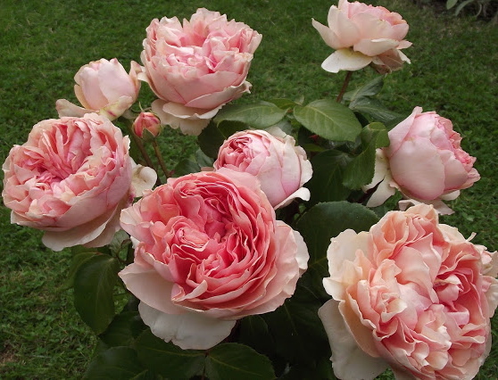 Роза имеет романтический вид, очень крупные - диаметром до 14см цветки розового цвета с охристым оттенком, с многочисленными лепестками (около 100) и традиционный аромат чайной розы.