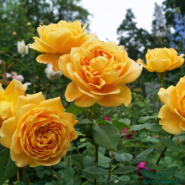 Это одна из самых крупноцветковых роз и самый великолепный сорт из коллекции Дэвида Остина! Идеальная роза! Цветки богатого золотисто-жёлтого цвета, махровые, большие, округлые, в виде гигантской, наполненной лепестками, чаши. Куст красивый, превосходного сложения, приятно округлённый. Побеги немного изгибаются. Высота и ширина 130 см, на опоре может использоваться как маленькая плетистая роза, в этом случае её высота от 180 см и более. Очень надёжный сорт, лёгкий в выращивании. Цветки с сильным запахом, вначале имеют аромат чая, затем замечательную комбинацию сладкого белого вина и земляники. Повторное цветение хорошее. Зимостойкость средняя. В 2000 г. получила награду за самую красивую форму куста и наилучший аромат.