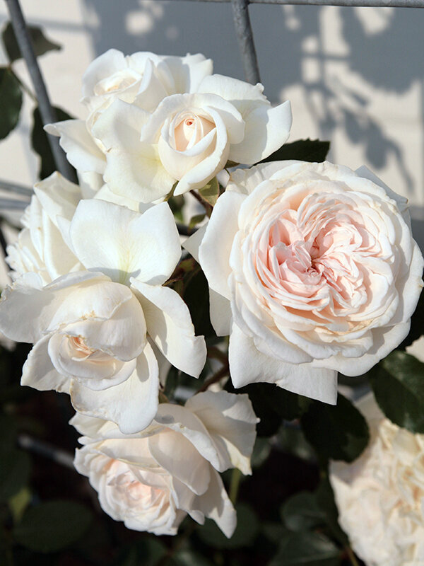 Роза сорта Honeymoon серии Arborose – изящный клаймбер с нежнейшими чашевидными соцветиями пудрового оттенка, которые источают деликатный сладковатый аромат.