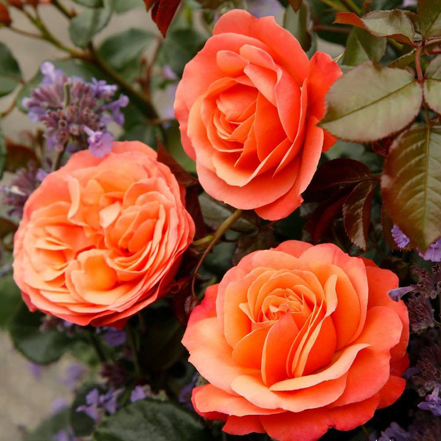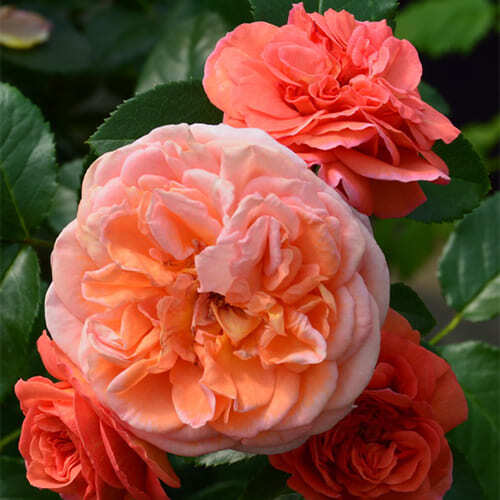 Обильноцветущий, не высокий сорт. Цветки диаметром 5-6 см, махровые, при раскрытии ярко-оранжевые, затем быстро меняют окраску на бледно-оранжевую. Аромат лёгкий. Цветение повторное в течение сезона. Листва высокоустойчивая к чёрной пятнистости и мучнистой росе. Идеальный сорт для выращивания в контейнере на террасе или балконе. Куст пряморослый, густой, компактный, при выращивании в кустовой форме высота 60 см и ширина 40 см.