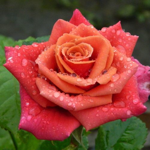 Эту розу можно смело назвать аристократической. Бутоны розы Мирабай бокаловидной формы, темно-бордового оттенка. Распускаясь, край лепестков слегка отгибается, приподнимая центр бутона выше. Общая цветовая гамма в момент полного роспуска – от терракотового до кофейно-оранжевого. Аромат у розы Мирабай слабый, едва различимый. Листва небольшого размера, темно-зеленого цвета. Поверхность пластин глянцевая, блестящая.