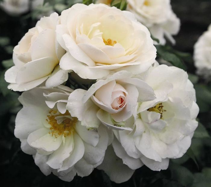 Обильноцветущая флорибунда со свежезелёной листвой. Цветки средние, диаметром 6-8 см, в пышных соцветиях, махровые, самоочищающиеся. Оттенок меняется от нежно-абрикосового при открытии цветка до сияюще-белого позднее. Куст очень густой, высотой 70-100 см. Листва очень устойчивая к мучнистой росе и чёрной пятнистости. Отлично подходит для массовых посадок и посадок небольшими группами в рабатках с многолетниками.