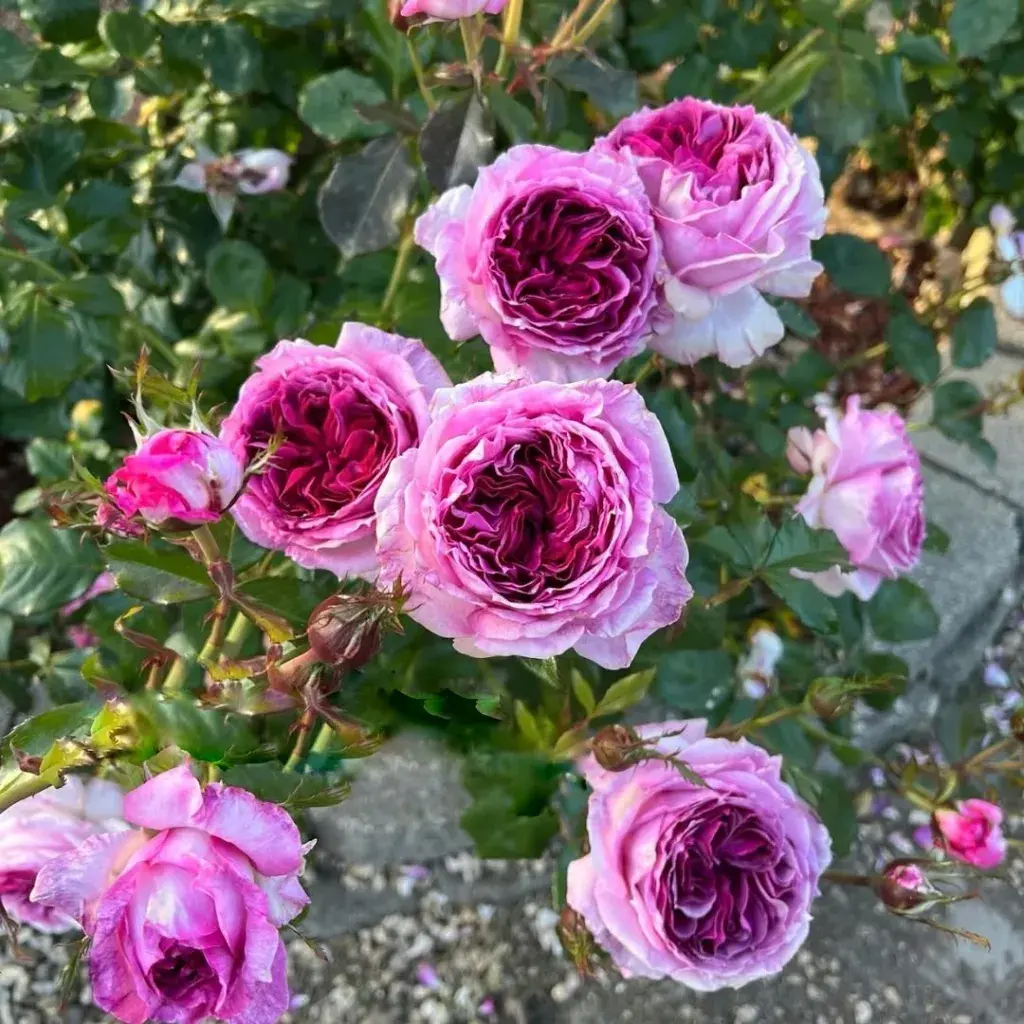 Великолепный куст цветет множеством розово сиреневых цветов с более темным фиолетово пурпурным центром. Роза названа именем знаменитого французского шеф-повара Тьерри Маркса. Именно уникальные цветовые краски и оттенки розы пленили этого мастера, напомнив ему о Японии, стране и культуре, которую он очень любил.