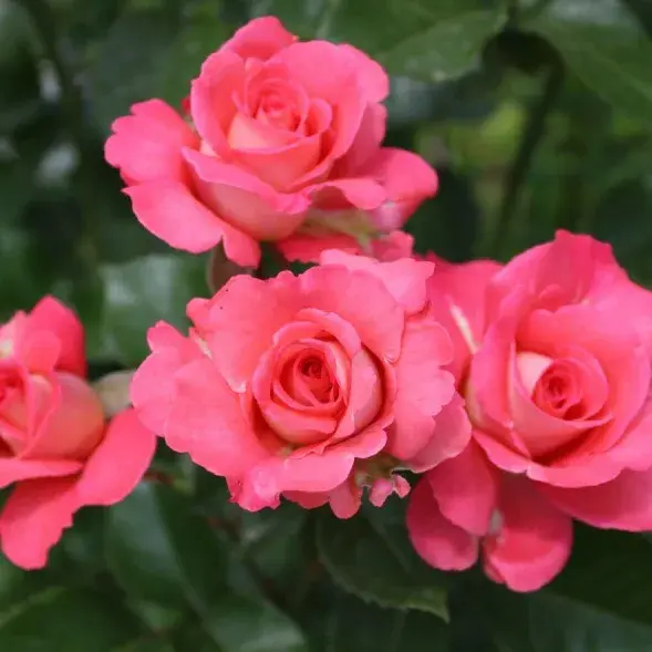 Цветки диаметром 8 см, махровые, кораллово-розовые, в соцветиях. Лепестки с волнистым краем. Аромат розы, лёгкий. Цветение повторное, в течение сезона. Листва мелкая, тёмно-зелёная глянцевая, устойчивая к заболеваниям. Куст высотой 50-70 см.
