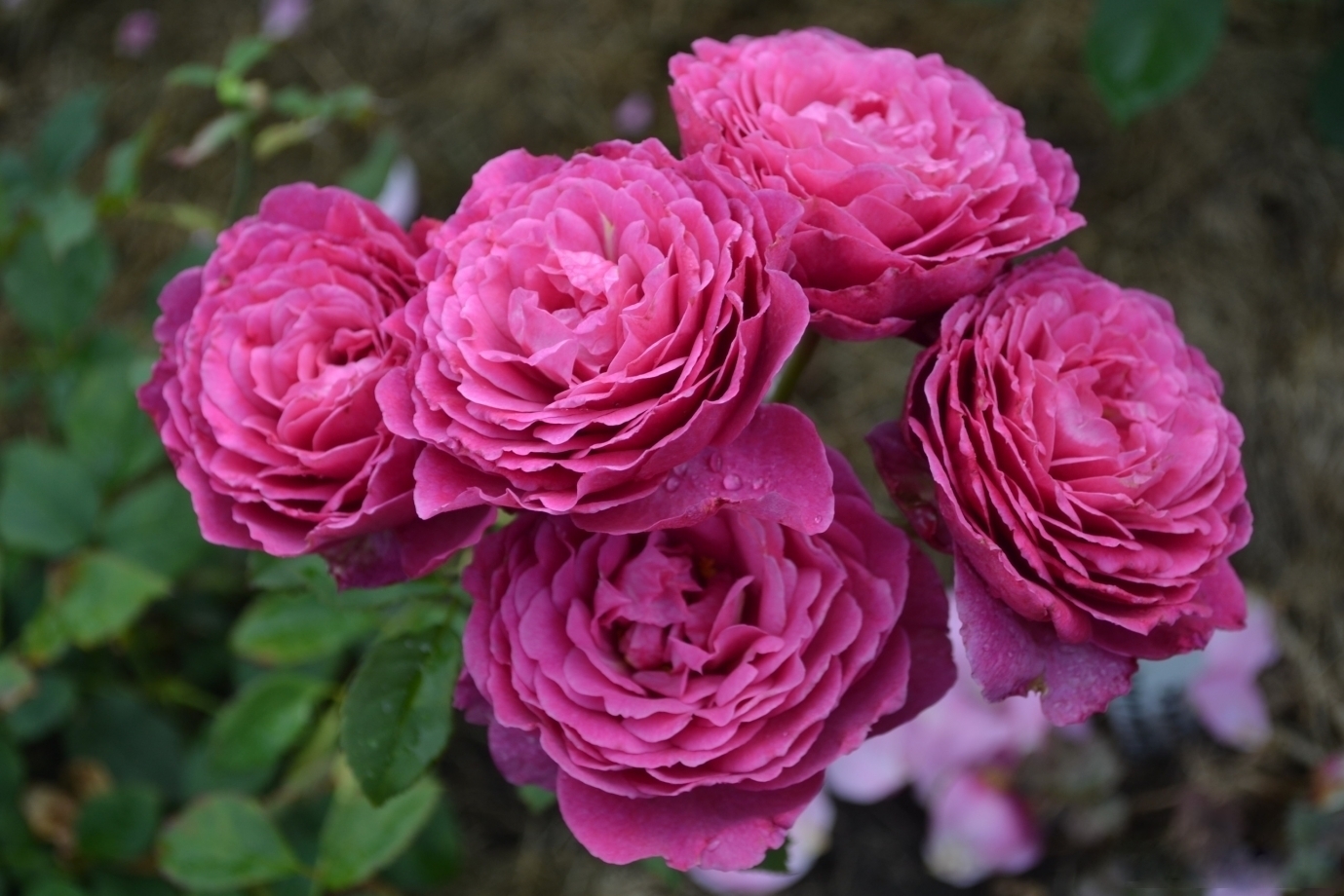 Цветки густо-розовые, с ярким фруктовым ароматом с тонами розового масла, цитрусов, абрикоса и груши. Высота куста около 80 см. Куст очень красивый, с крупными темно-розовыми цветками с волнистыми лепестками, ровный и аккуратный, с синеватой матовой листвой. Исключительный сорт.
