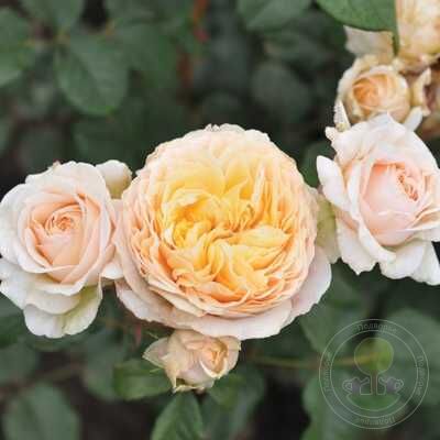 Роза из серии «Frayla». Совершенно удивительный сорт с интенсивным медово-персиковым ароматом. Цветки диаметром 5-7 см, махровые, чашевидные, кремово-жёлтые с абрикосовым и серебристым оттенками, собраны в соцветия. Лепестки мягкие шелковистые. Цветение повторное. Листва тёмно-зелёная, устойчивая к болезням. Куст сильный, прямостоячий, высотой 60-80 см. Идеальная роза для заднего плана бордюра или для цветочного дизайна балкона. Невероятный аромат, цвет и здоровье делают эту розу жемчужиной любого сада.