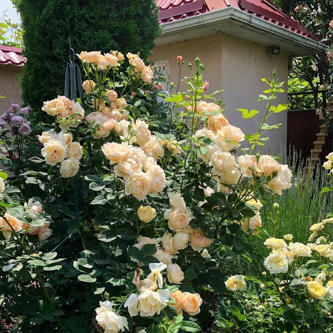 Розе 2 года, в этом году заметно подросла в высоту около 150 см, цветение долгое, но пока не обильное. Надо дать время, это же остинка. В остальном довольна, цветы поникающие, красивые пумпоны, веду на арку, можно шрабом.Не болела ничем, листва здоровая, красивая.