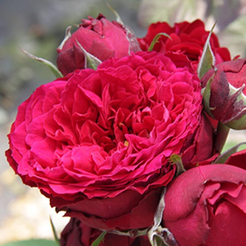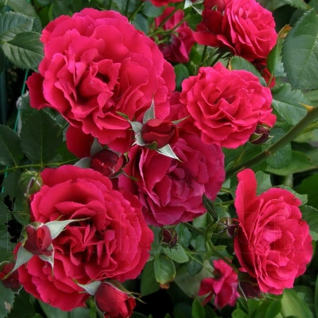 Энергично растущая тёмно-красная роза с мягким ароматом, густо-махровыми (до 70 лепестков), довольно крупными, чашевидной формы цветами. Цветение в кистях, обильное, в течение всего сезона. Листва густая, устойчивая к болезням.